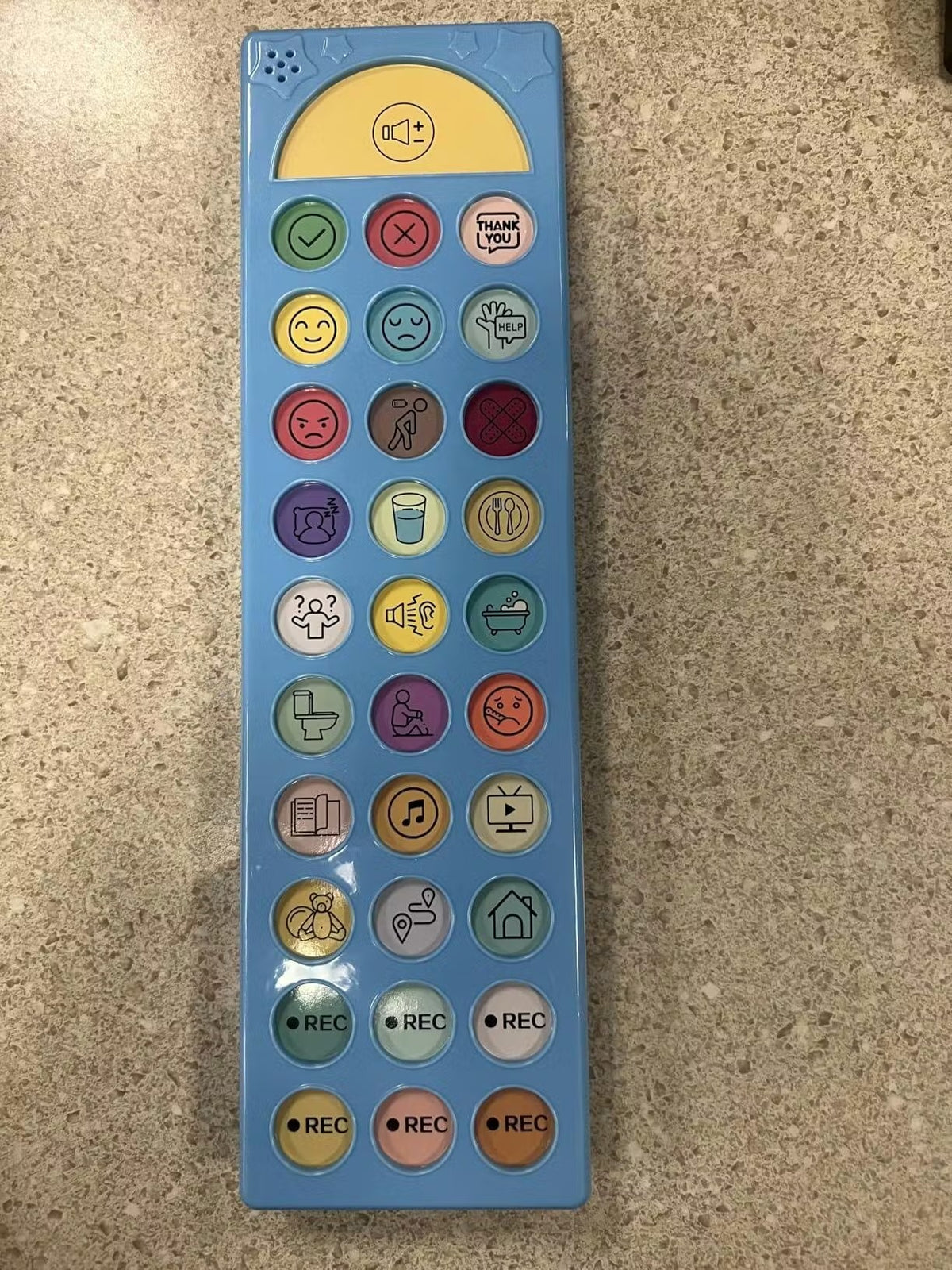 With 24 easy buttons and your own voice recorded inside, he can tell you exactly what he wants. Take this connection everywhere you go, so he always has his voice and you always have peace of mind knowing he can communicate anytime, anywhere.